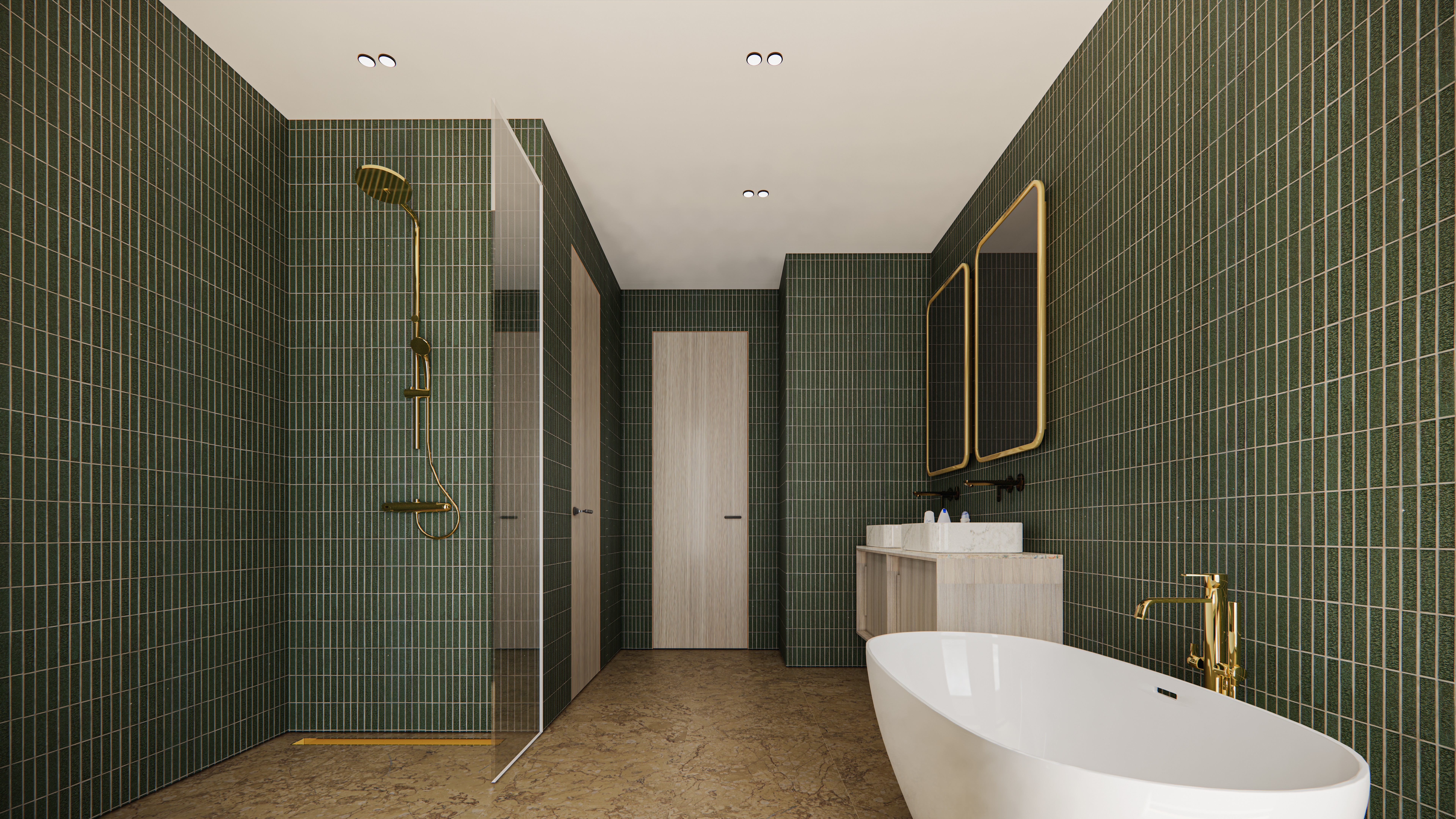 The building organizes its program vertically: rising from a grand lobby and two basement parking levels, it features five floors of premium office space, transitioning into an exclusive residential tier. The upper levels house four high-standing apartments and are crowned by two expansive penthouses on the 7th floor.