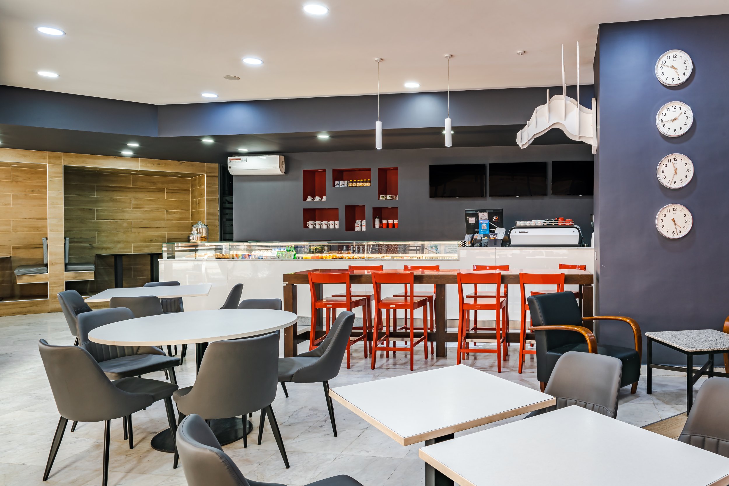 The challenge in this project was renovating the existing space and designing the interior while respecting the unique identity of Presse Café, recognized worldwide.